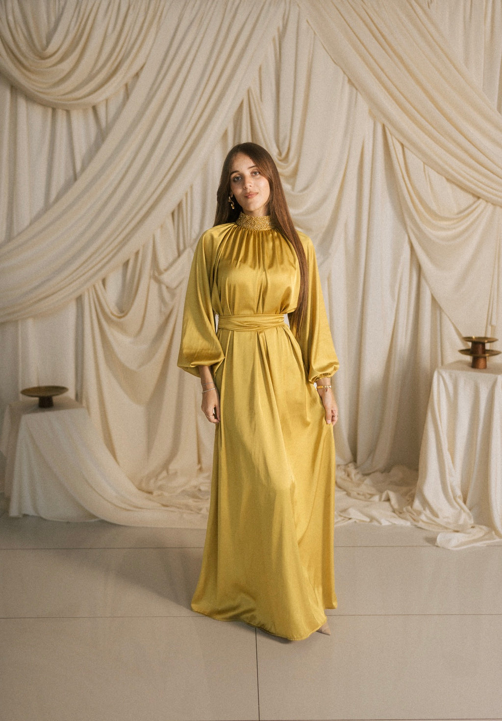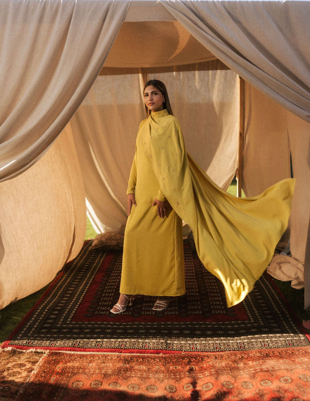 Sahar high neck drop sleeve kaftan