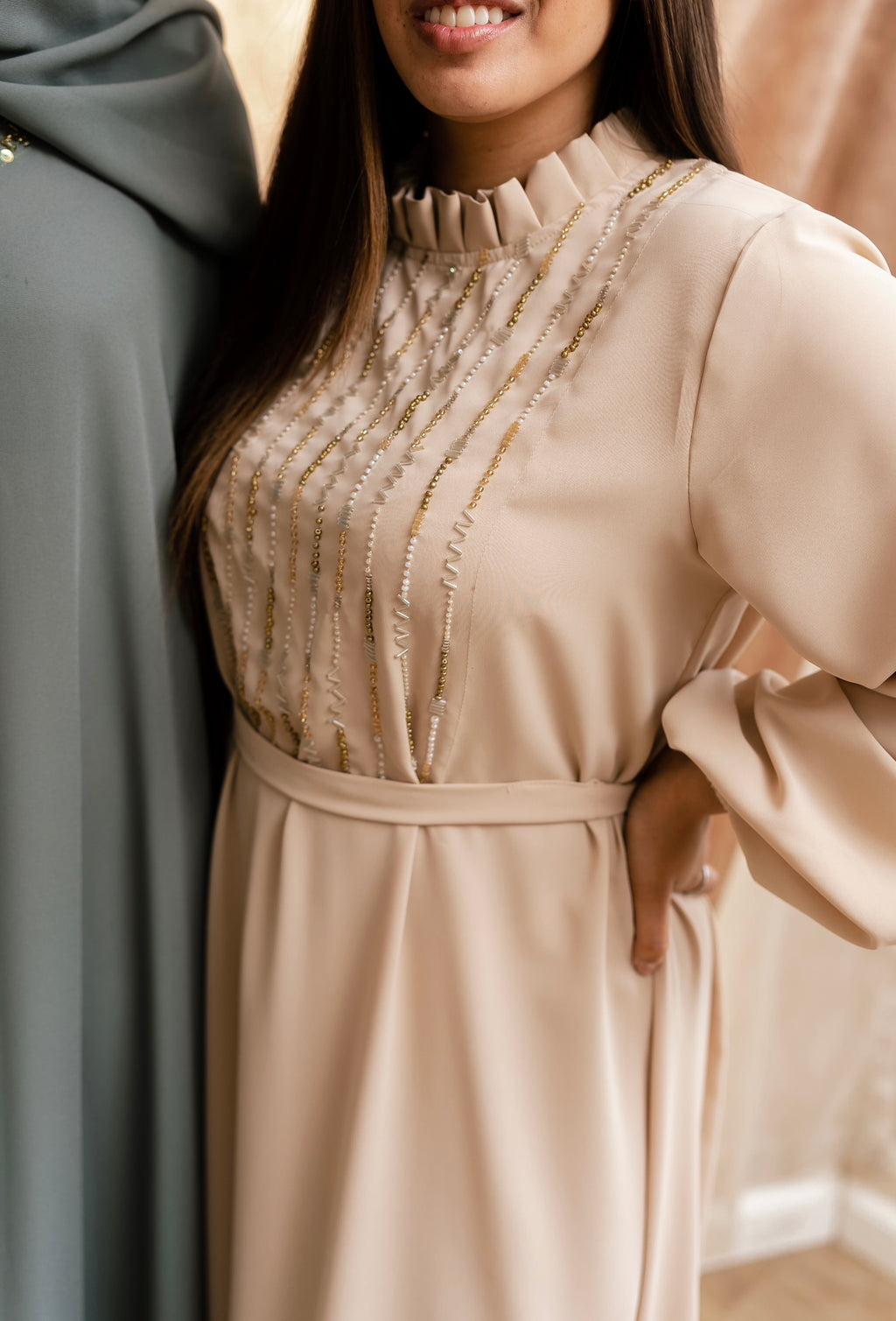 Almond pleated dress