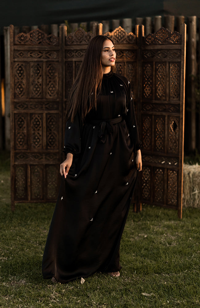 Black High Neck Beaded Dress
