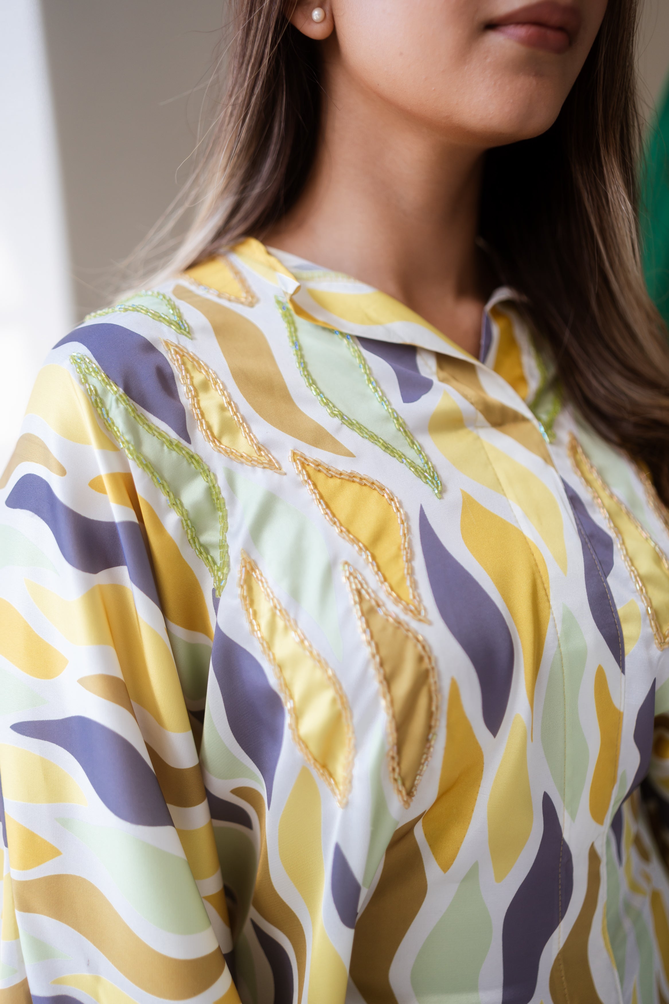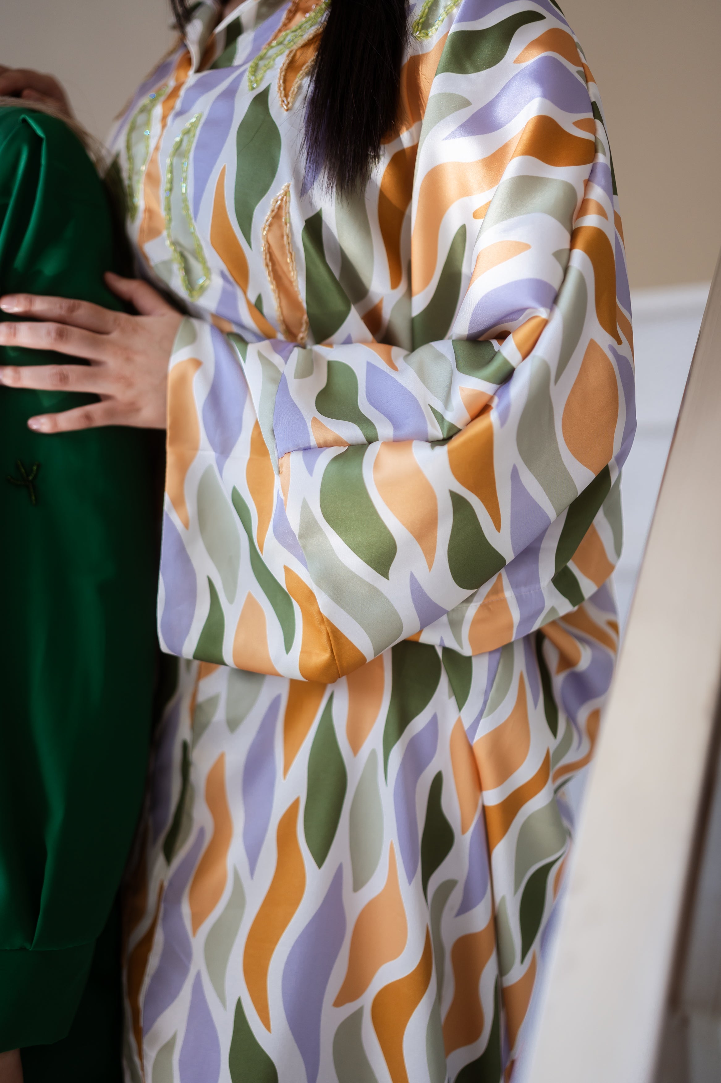 A beautiful soft luxe fabric finished with a soft bead. Allow 5-7 working days for this product comes with a tie in belt