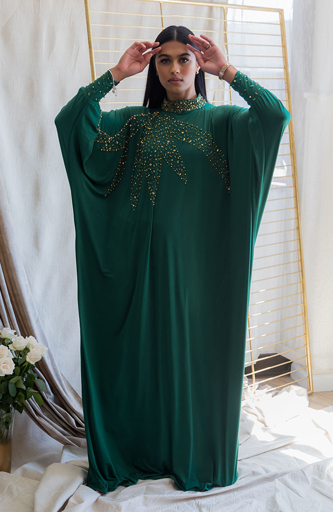 High Neck Kaftan with Leaf Bead Design