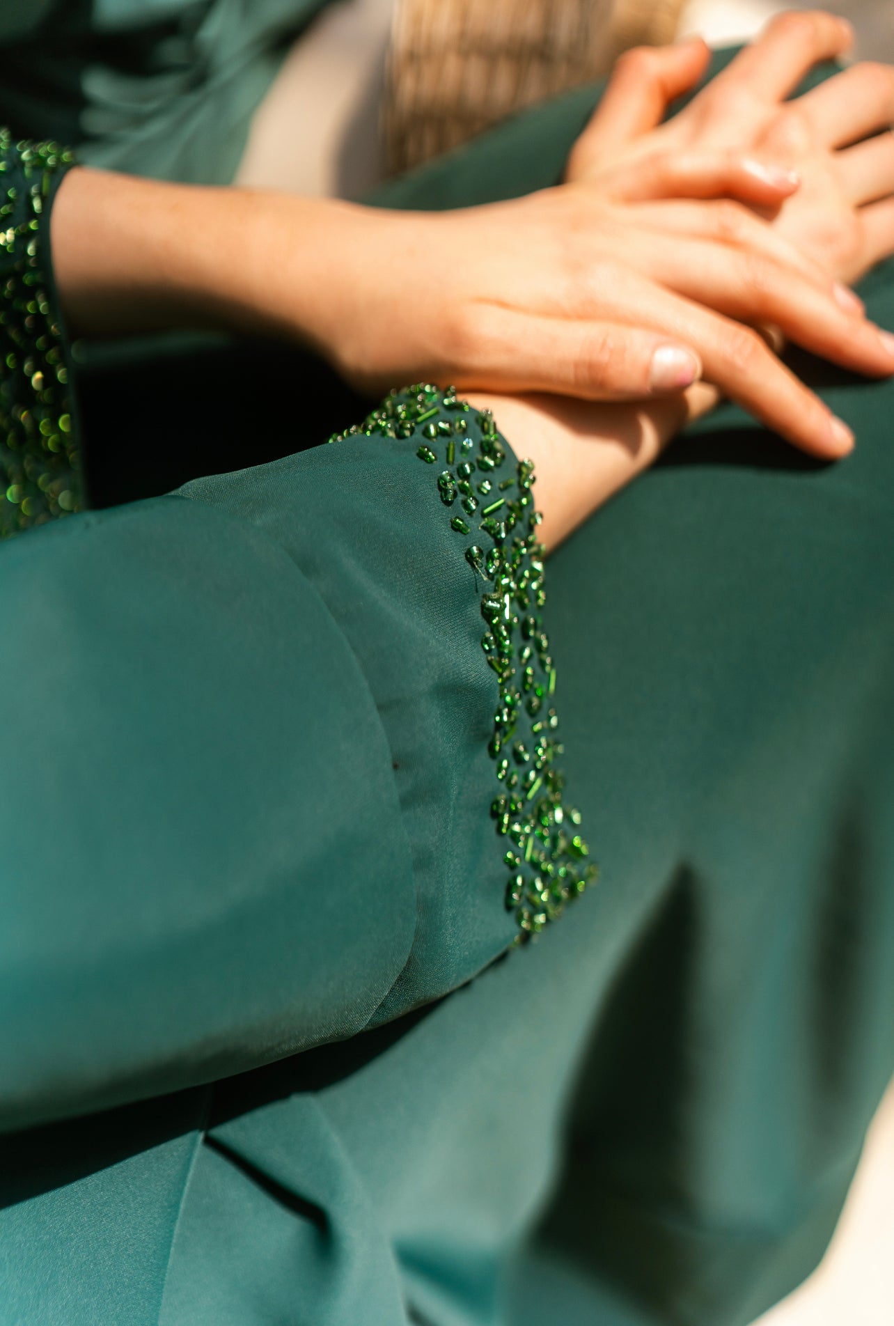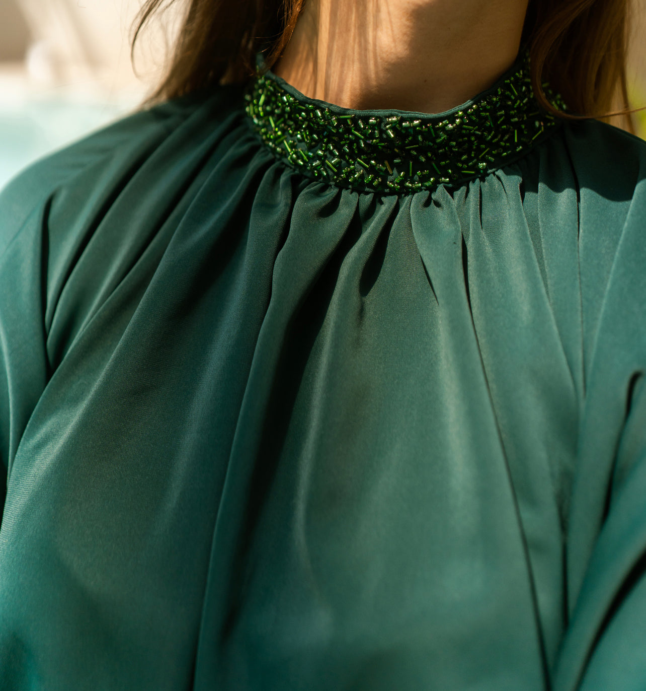 A soft minimal self color beaded kaftan